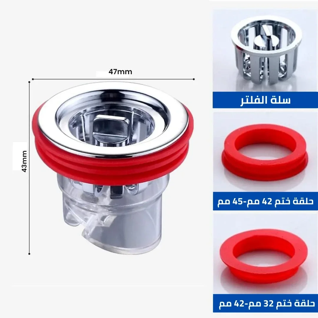 فلتر للشعر: يمنع الشعر وبقايا الأوساخ من سدّ المصارف.