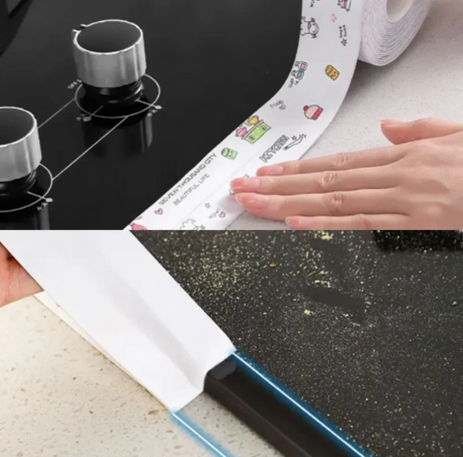 شريط لاصق عازل للماء لإغلاق الفجوات – الحل السريع لمنع التسرب والاتساخ في المطبخ والحمّام!